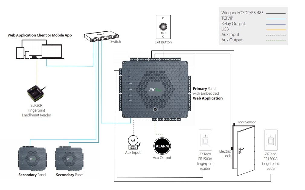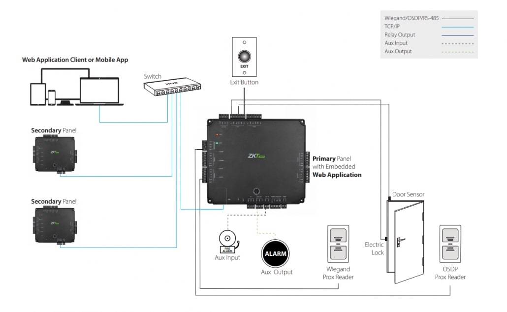 - Scalability up to 84 Doors by adding maximum 20 Secondary Controllers, quickly and easily using network-based discovery. Easy installation, and easy to use for small projects.
