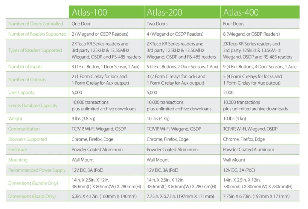 In summary, the Atlas Series by ZKTeco is a powerful, yet intuitive, electronic door access-control system supporting the latest innovations in physical security and biometric access. Please check the feature details as following: