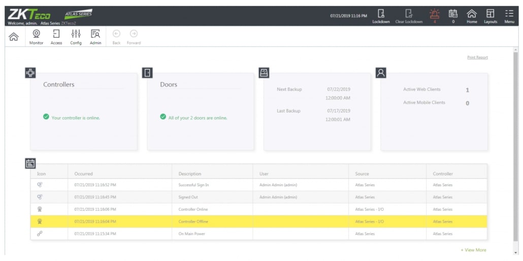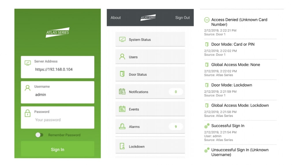 Atlas Series consists of RFID & Biometric door access control panels which have an embedded web application. The web application eliminates the need for access control management software. Atlas panels support PoE and Wi-Fi. This saves installers time & money eliminating the need to run extra wire. Atlas is extremely easy to install & operate. Atlas includes an easy to navigate online help tool complete with hyperlinks so questions can be quickly & easily searched. Atlas also includes a convenient mobile App which supports both iOS and Android and is available in Google Play and the Apple stores. Atlas is available in 1, 2 and 4-door panels which can support up to 84 doors. Features include User Enrollment & Management, Door Control & Monitoring, Global Lockdown & Unlock, Reporting, Maps, Anti-Passback, Mustering Reporting, First-Card Opening, Multi-Card Opening, Card Design and Duress PINs and more.